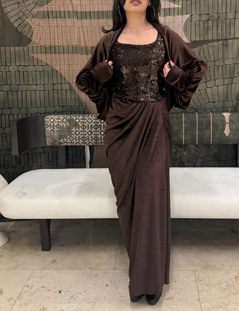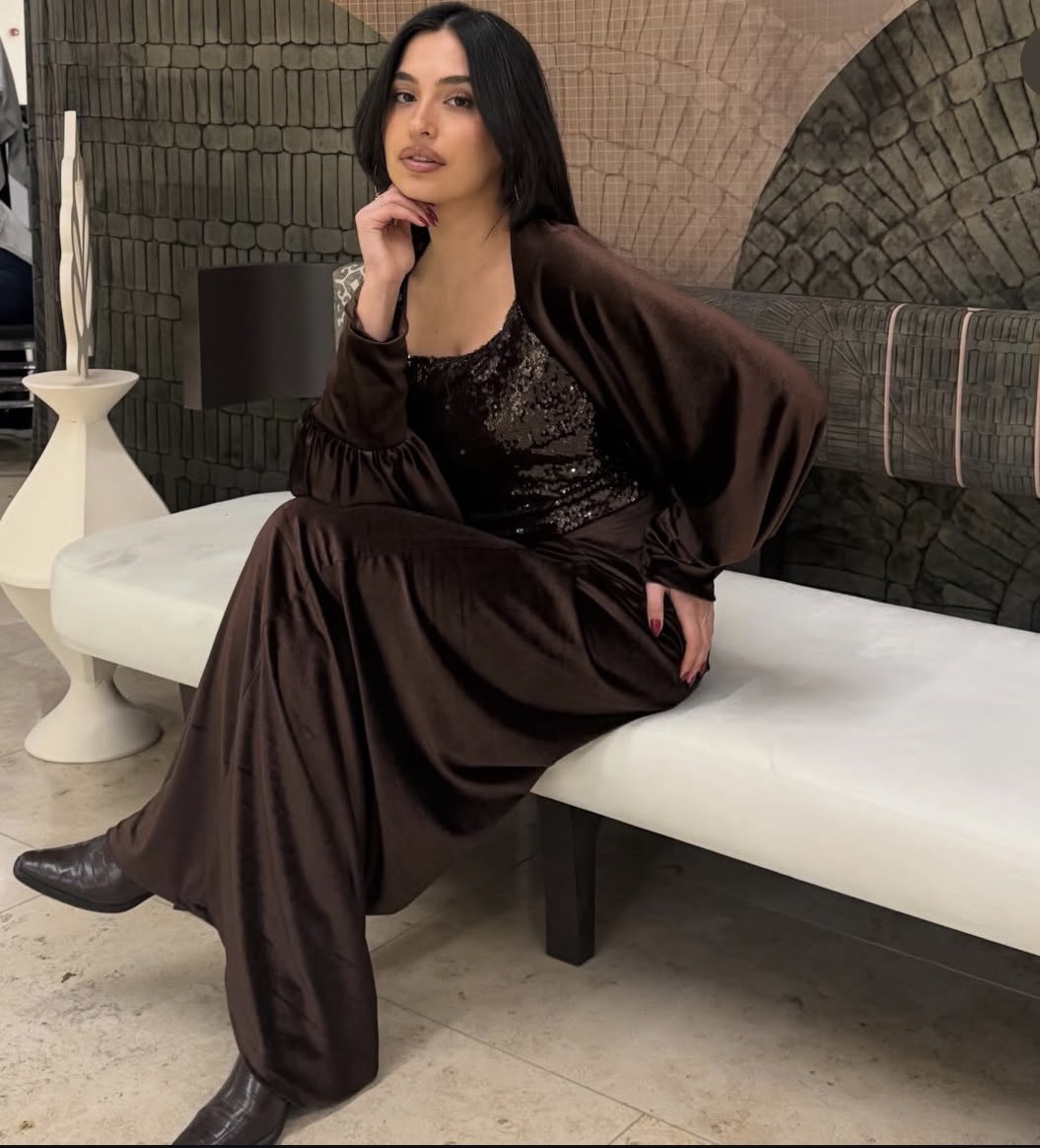 A stunning two-piece set featuring a velvet and a beautifully detailed Daraa.